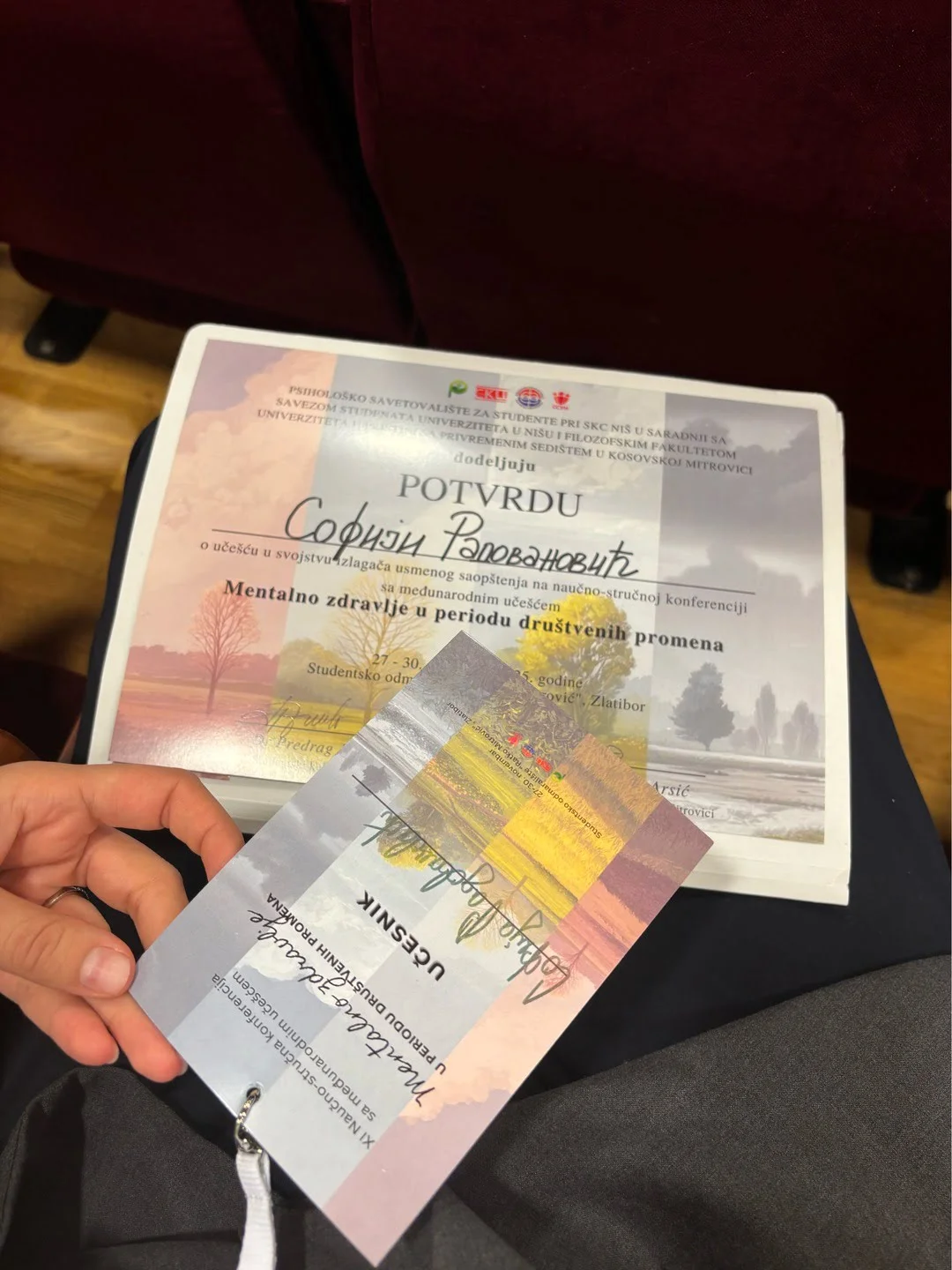 Sofija Radovanović, a Psychology student at the Faculty of Organizational Studies “Eduka”, excelled at the 11th Scientific-Professional Conference “Mental Health in a Period of Social Change”, held on Zlatibor from November 27 to 30.
