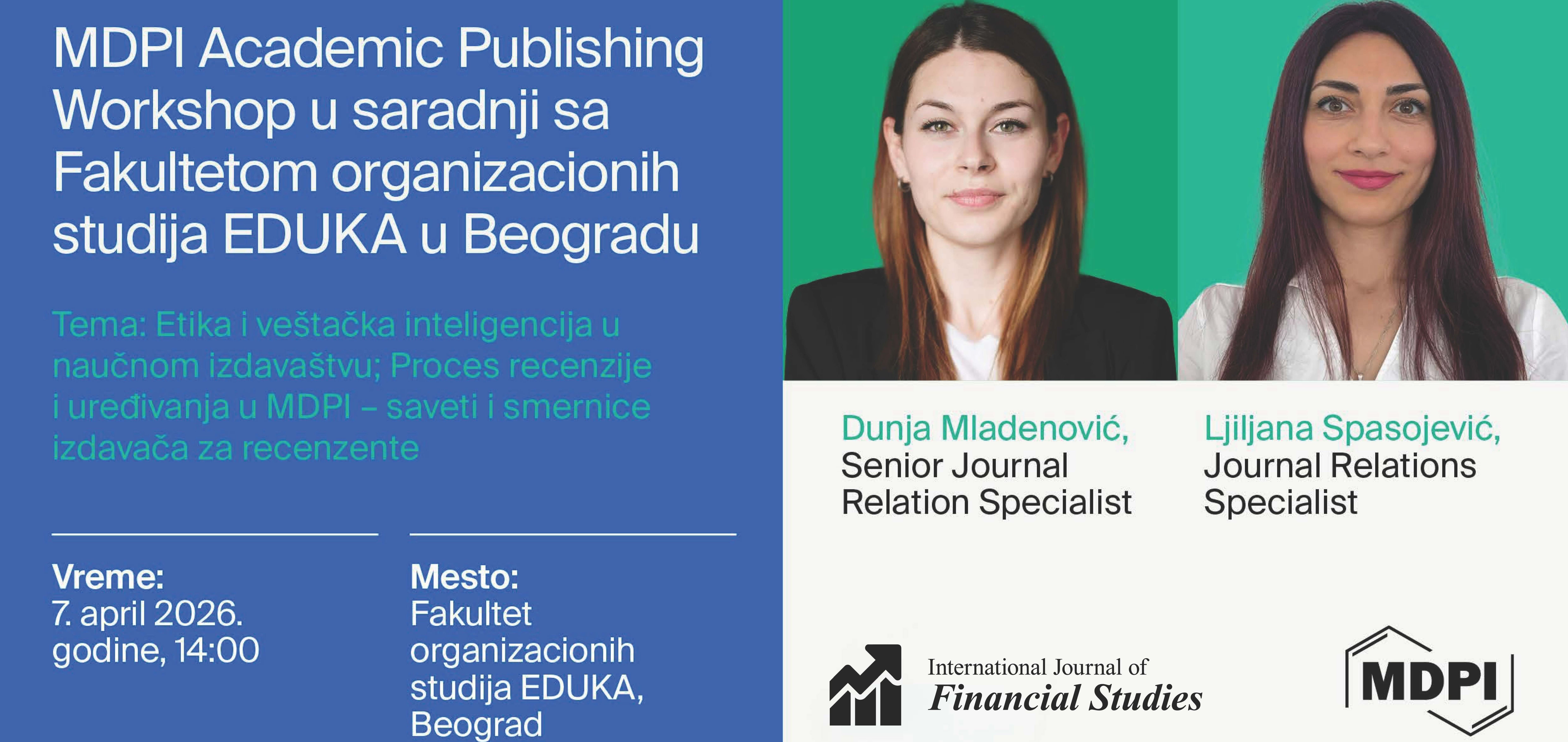 The Faculty of Organizational Studies “Eduka” is pleased to announce the Academic Publishing Workshop, which will be organized in cooperation with the renowned international publishing hou...