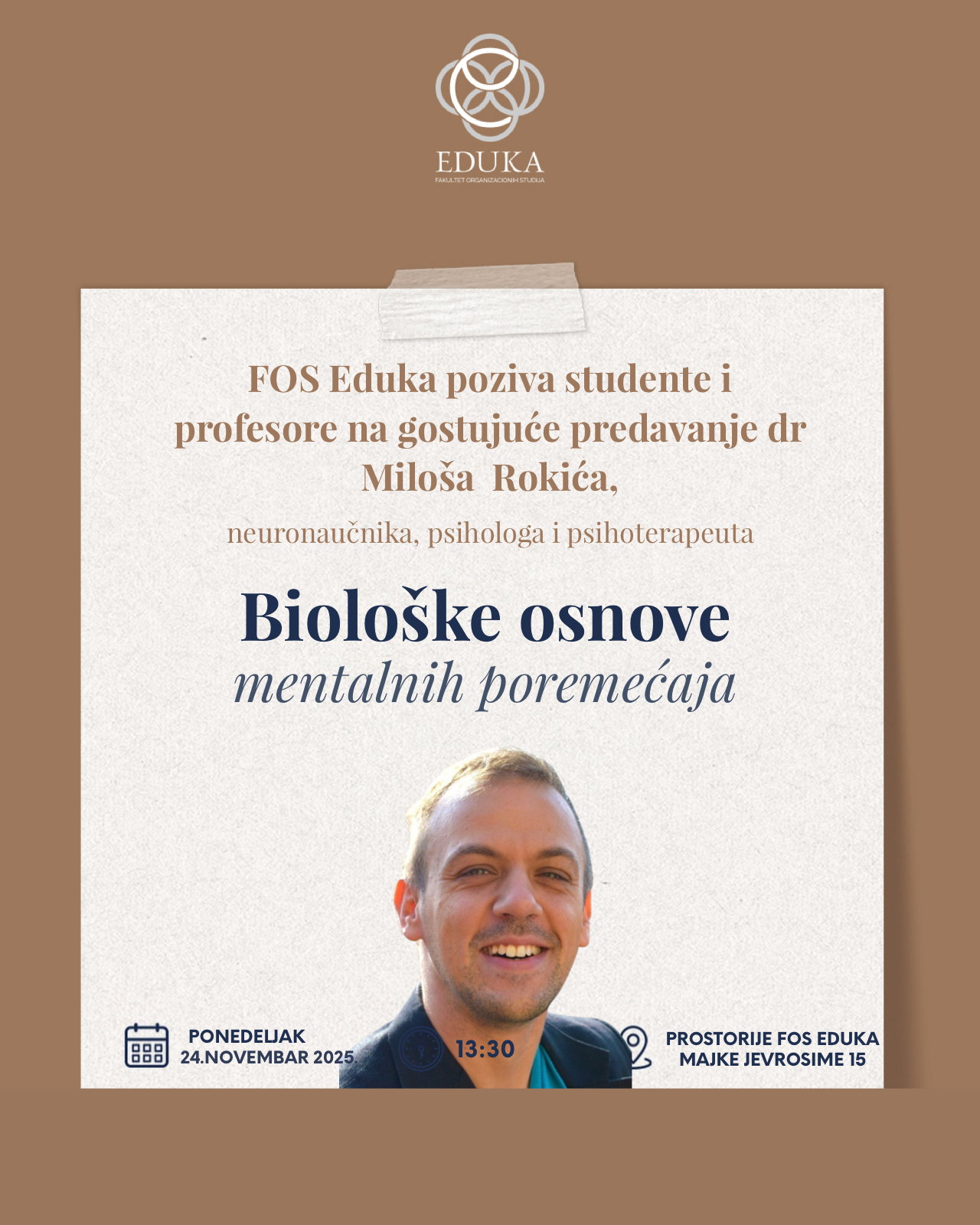 Expert lecture by Dr. Miloš Rokić at FOS 'Eduka': ‘Biological Foundations of Mental Disorders’